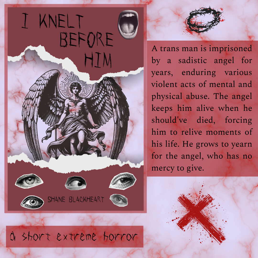 A trans man is imprisoned by a sadistic angel for years, enduring various violent acts of mental and physical abuse. The angel keeps him alive when he should've died, forcing him to relive moments of his life. He grows to yearn for the angel, who has no mercy to give.